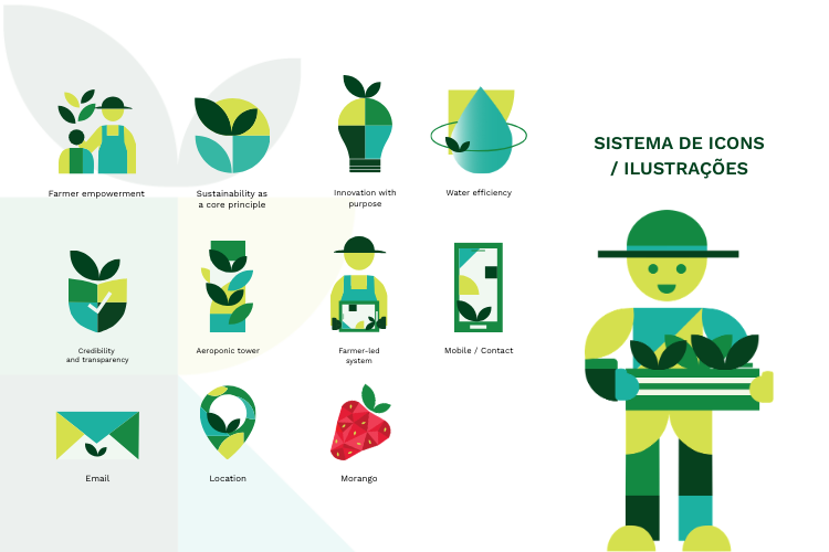 Desenvolvemos a identidade visual de raiz, criando um sistema de marca sólido e escalável, acompanhado por um manual de marca completo. A identidade é inspirada na verticalidade das torres aeropónicas, refletindo visualmenteo crescimento e a inovação do sistema. A paleta de cores remete para os verdes de folha e tons associados à água, evocando o equilíbrio natural de uma tecnologia que cultiva sem recurso ao solo.