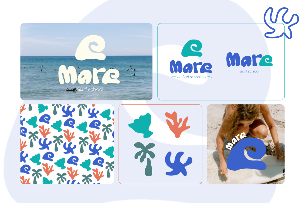 Para esta marca desenvolvemos uma identidade visual fresca e expressiva, onde o logótipo, o símbolo e os elementos gráficos evocam formas orgânicas do mar e o espírito descontraído da praia.