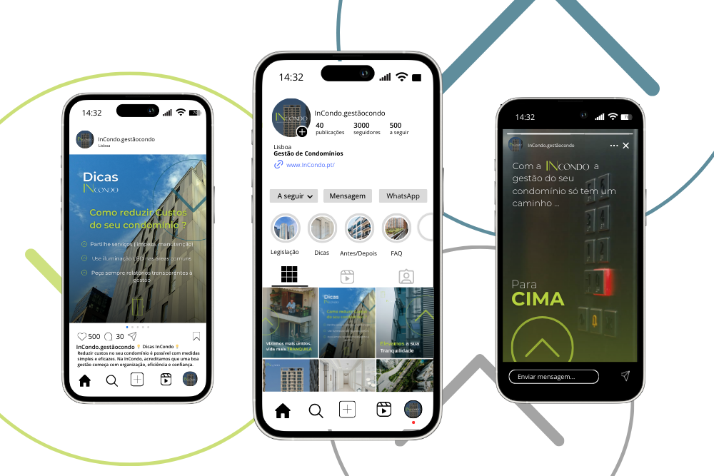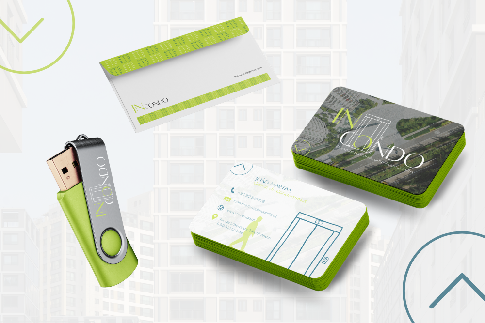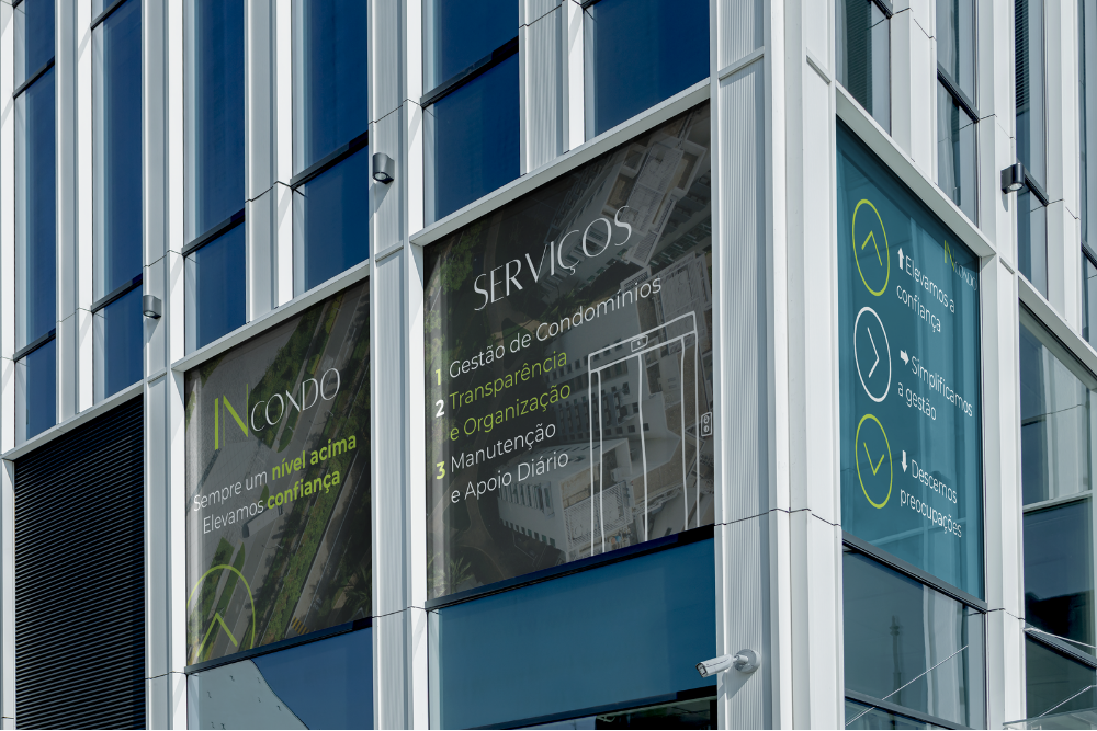 Desenvolvemos uma identidade visual simples e versátil, construída a partir de um conceito visual inspirado num elemento familiar a qualquer condomínio: o elevador. A marca apresenta diferentes variações, incluindo o logótipo tipográfico, uma versão com o símbolo do elevador e o símbolo isolado, permitindo grande flexibilidade de aplicação. Os elementos gráficos inspirados nos botões de subir e descer reforçam esta ideia de movimento e evolução, criando uma comunicação visual coerente, profissional e facilmente reconhecível em diferentes suportes.